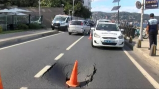 Sarıyer'de yolda çökme meydana geldi