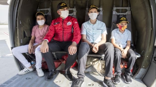 Çocuklar, helikoptere binmeyi hayal ettiklerini söyleyerek yaşadıkları mutlulukları paylaştı.
