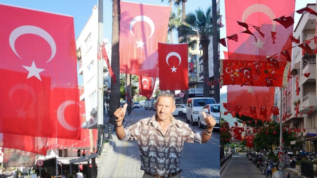 Marmarisli terzi Salih Yazgan yaşadığı sokağı, her 23 Nisan öncesi bayram yerine çeviriyor. İki bin tane Türk Bayrağı'nı tek tek yıkayıp ütüledikten sonra eşiyle birlikte binalara asan terziye çocuklar '23 Nisan Dede' diyor.