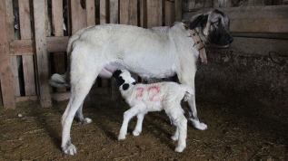 Muhtar Vedat Çelebi de "Çiftçi arkadaşımızın koyun sürüsü var. Bir gün baktık ki Kangal, yavru kuzuyu emziriyor, şaşırdık. Annelik içgüdüsü demek ki." diye konuştu.