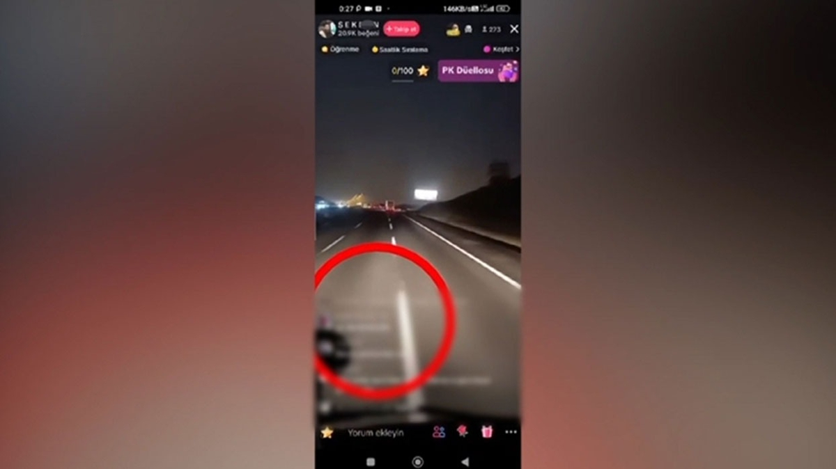 Yapılan araştırmada, söz konusu sürücü ve kullandığı aracı belirleyen jandarma ekibinden biri, TikTok isimli sosyal medya platformundaki canlı yayına bağlanarak şoföre, "Öndeki trafik jandarmasını takip et" ve "İlerde jandarma var" mesajlarını gönderdi.