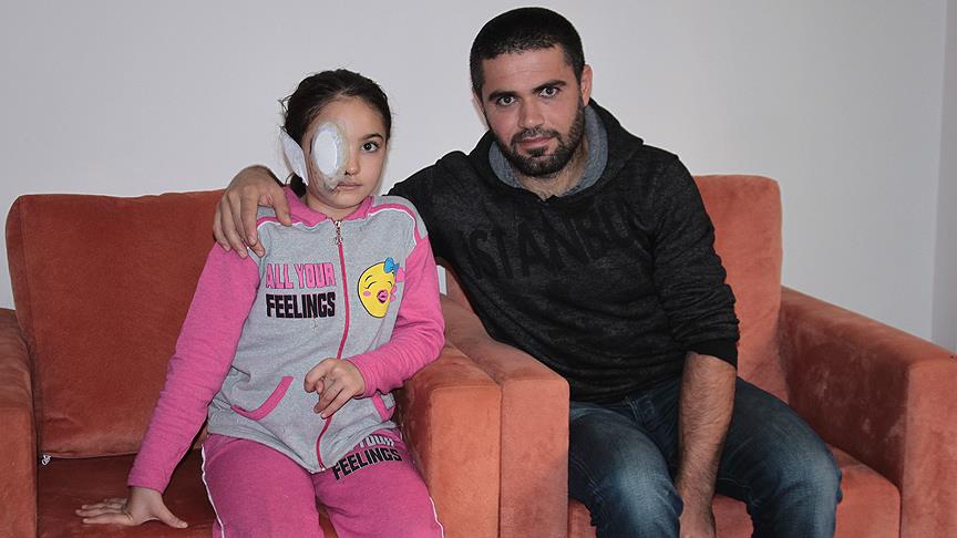 Suriye'nin İdlib kentinde Esed rejiminin 5 yıl önce gerçekleştirdiği varil bombalı saldırıda sağ gözü ve yanağı yanan 10 yaşındaki Luceyn'e beşinci ameliyatı İstanbul'da yapıldı.