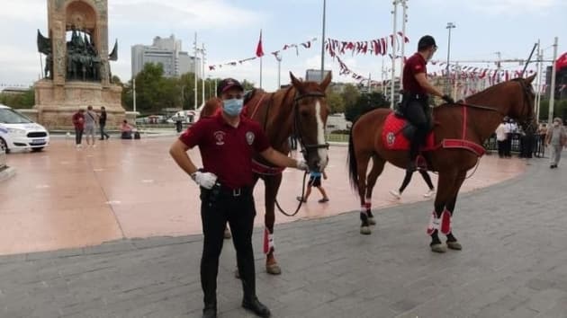 İstanbul Emniyet Müdürlüğü Altı Polis Amirliği ekipleri Taksim'de sosyal mesafe ve maske denetimi yaptı. Taksim Meydanı ve İstiklal Caddesi üzerinde devriye gezen atlı polisler maske takmayan, maskesini çenesine indiren kişilere tek tek uyarılarda bulundu. Atlı polisleri gören vatandaşlar da bol bol hatıra fotoğrafı çektirdi.