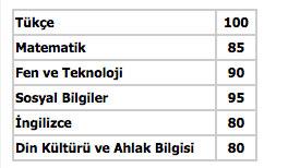 8. Sınıf Yılsonu Puanı 80 (100 puan üzerinden) olsun.