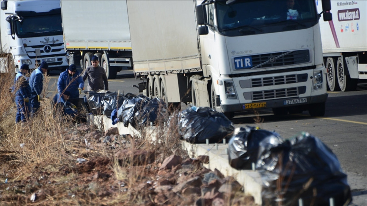 Tır yoğunluğu yaşanan Çıldır-Aktaş Gümrük Kapısı yolunda 7 kamyon çöp toplandı