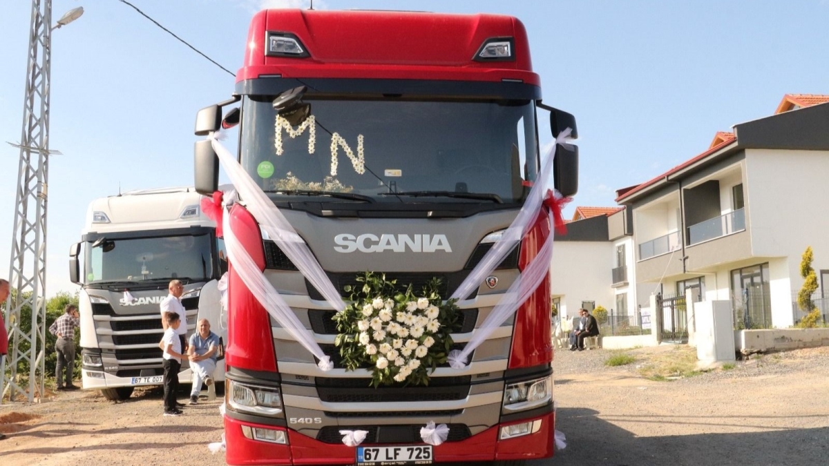Zonguldak'ın Ereğli ilçesinde lojistik firması sahibi Satılmış Fidan'ın oğlu Necati Fidan, düğün arabası olarak TIR'ı tercih etti. Süslenip gelini almak için yola çıkan TIR'a, yaklaşık 20 TIR da eşlik etti. Melek Fidan, Ereğli sokaklarında dolaşan TIR'dan kendisine merakla bakanlara el salladı.