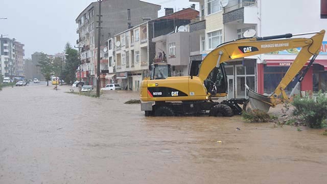 Yağışın etkisini artırarak sürdürmesi ve taşan dereler sebebiyle ilçe merkezindeki çok sayıda ev ve iş yerini su bastı.