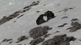 Tunceli’nin Pülümür ilçesinde hayvancılığın yanı sıra doğa fotoğrafçılığı da yapan Özgür Balcı, kayak keyfi yapan boz ayı ile birbirlerine kur yaptıktan sonra kar keyfi yapan iki boz ayıyı görüntüledi.