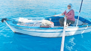 Antalya'nın Demre ilçesinde "Gofret" ismini verdiği kayığıyla saatlerce kürek çeken Fatma Mazılı, teknelerine yanaştığı turistlere boncuklarla süslediği takıları ve dağdan topladığı bitkileri satarak geçimini sağlıyor.