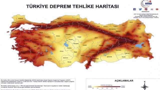 Türkiye Deprem Tehlike Haritası yayımlandı