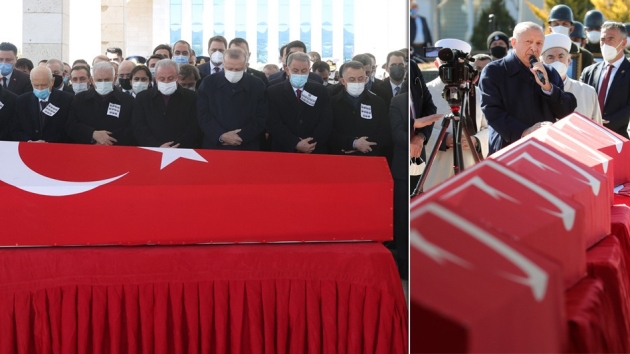 Ankara'da düzenlenen cenaze törenine Cumhurbaşkanı Recep Tayyip Erdoğan, TBMM Başkanı Mustafa Şentop, kabine üyeleri, şehitlerin aileleri ve birçok vatandaş katıldı.
