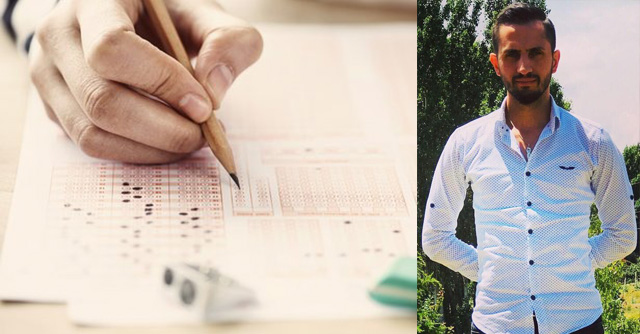Edinilen bilgiye göre, Sercan Bolat (24) Ankara Sincan'daki 100. Yıl İmam Hatip Ortaokulunda YKS'nin ilk oturumuna girdi.