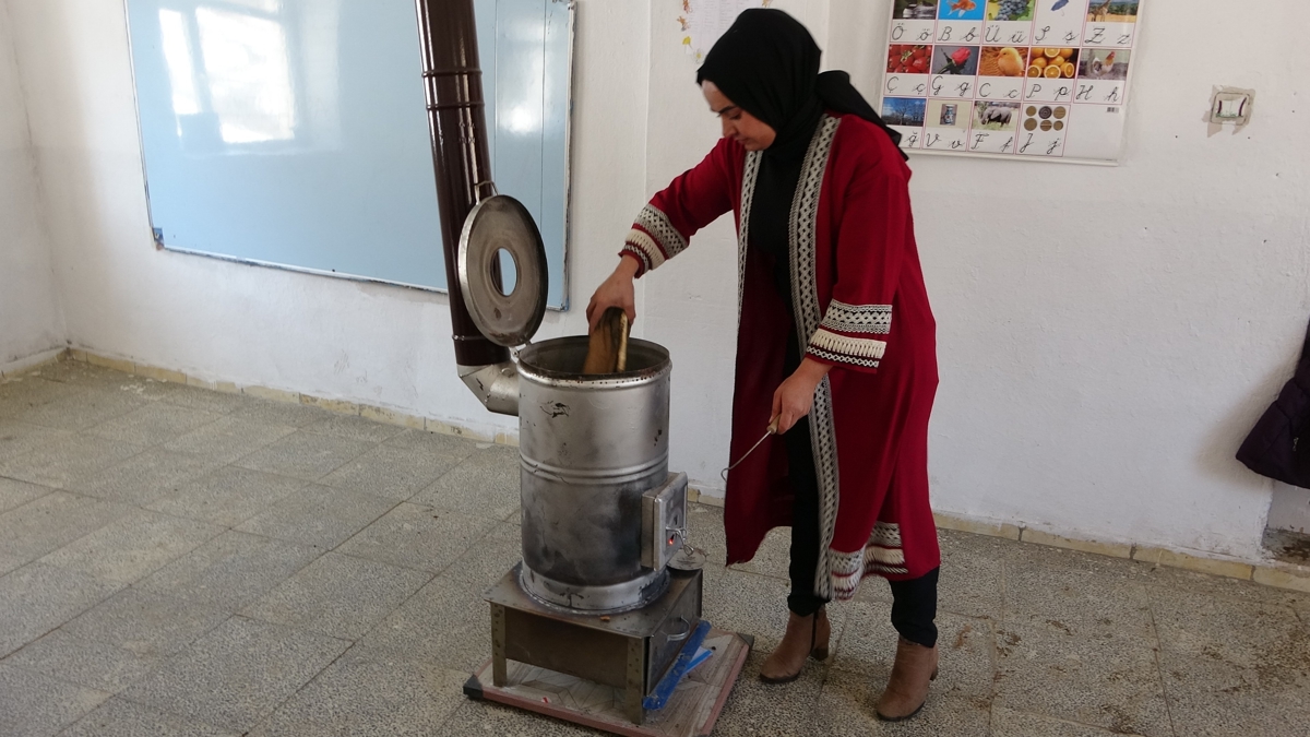 Kendi köyünde görev yapan Müjgen Öğretmen öğrencileri için odun kırıp sobayı yakıyor, yerleri temizleyip camları siliyor. Fedakar öğretmen, karlı günlerde de öğrencilerini tek tek evlerine bırakıyor.
