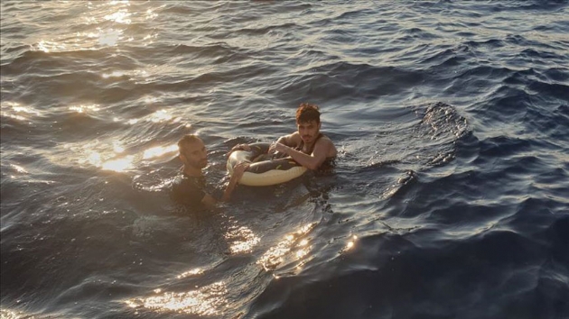 Bölgedeki arama çalışmalarında, yüzerek Yunanistan'a çıkmaya çalışan Filistin ve Suriye uyruklu iki düzensiz göçmen yakalandı.
