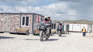 Yunus timleri güvenliğini sağladıkları konteyner kentteki çocuklarla oyunlar oynuyor.