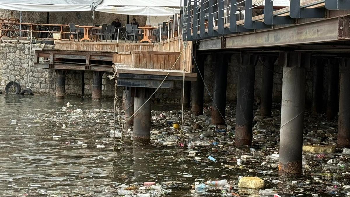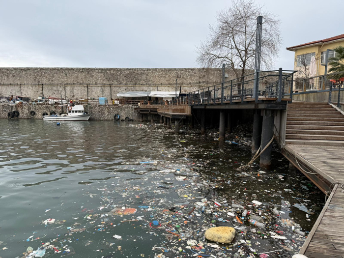 Liman ve sahil kesiminde biriken atıklar, çevre kirliliğine neden oldu.