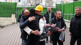 Madencilerden Galatasaray forması, baret, oyuncak ve dondurma isteyen Yiğit, kapıdan girdiğini gördüğü madencilere koşarak sarıldı.