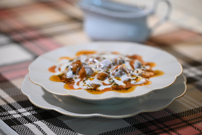 Sos için 2-3 kaşık yağ, isteğe göre karabiber, kırmızıbiber ve naneyle cezvede eritilir.