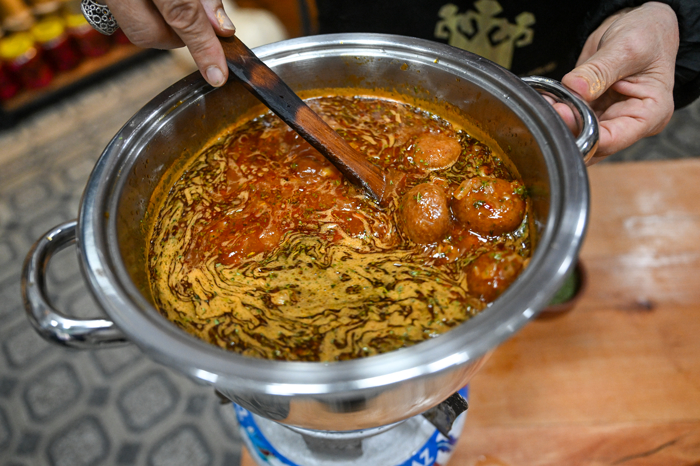 4. Kaynayan malzemelerin içine önce "kızı" (hamur küreleri), daha sonra "anası" (köfte) eklenir ve 10 dakika kaynatmaya devam edilir.
