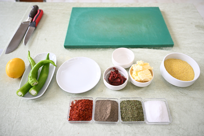 Yeşil biberler ince ince doğranıp tereyağında salça ile kavurulur.