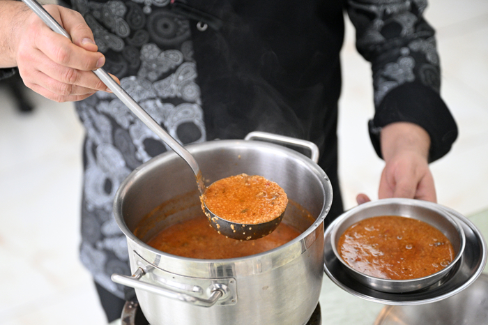 Salçalı karışımın üzerine 6-7 su bardağı su ve bulgur ilave edilir.